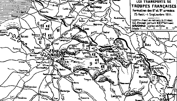 Carte des transports de troupes françaises du 25 août au 4 septembre