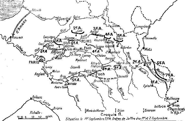 Carte des positions le 1er septembre, armée French entre 6e et 5e armées françaises