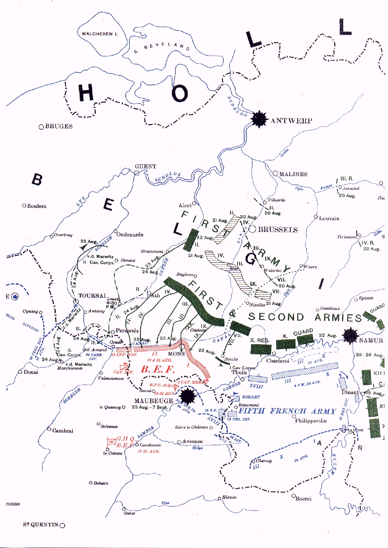 MAP 5 WEST - SITUATION 17-24 AUGUST 1914