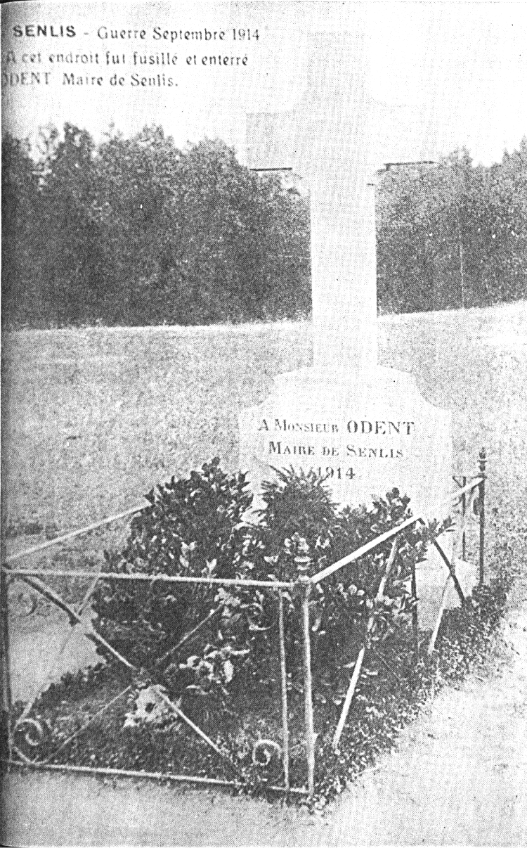- Mercredi 2 septembre : Le canon fait rage. Les Allemands sont proches. A 14 heures, arrivée des Allemands dans Senlis par la route en provenance de Compiègne. Premiers morts (obus) et prise en otage de 6 personnes ainsi que du maire M. ODENT ils seront exécutés dans la soirée à Chamant. (Les pieds du maire sortent de la tombe creusée rapidement.)