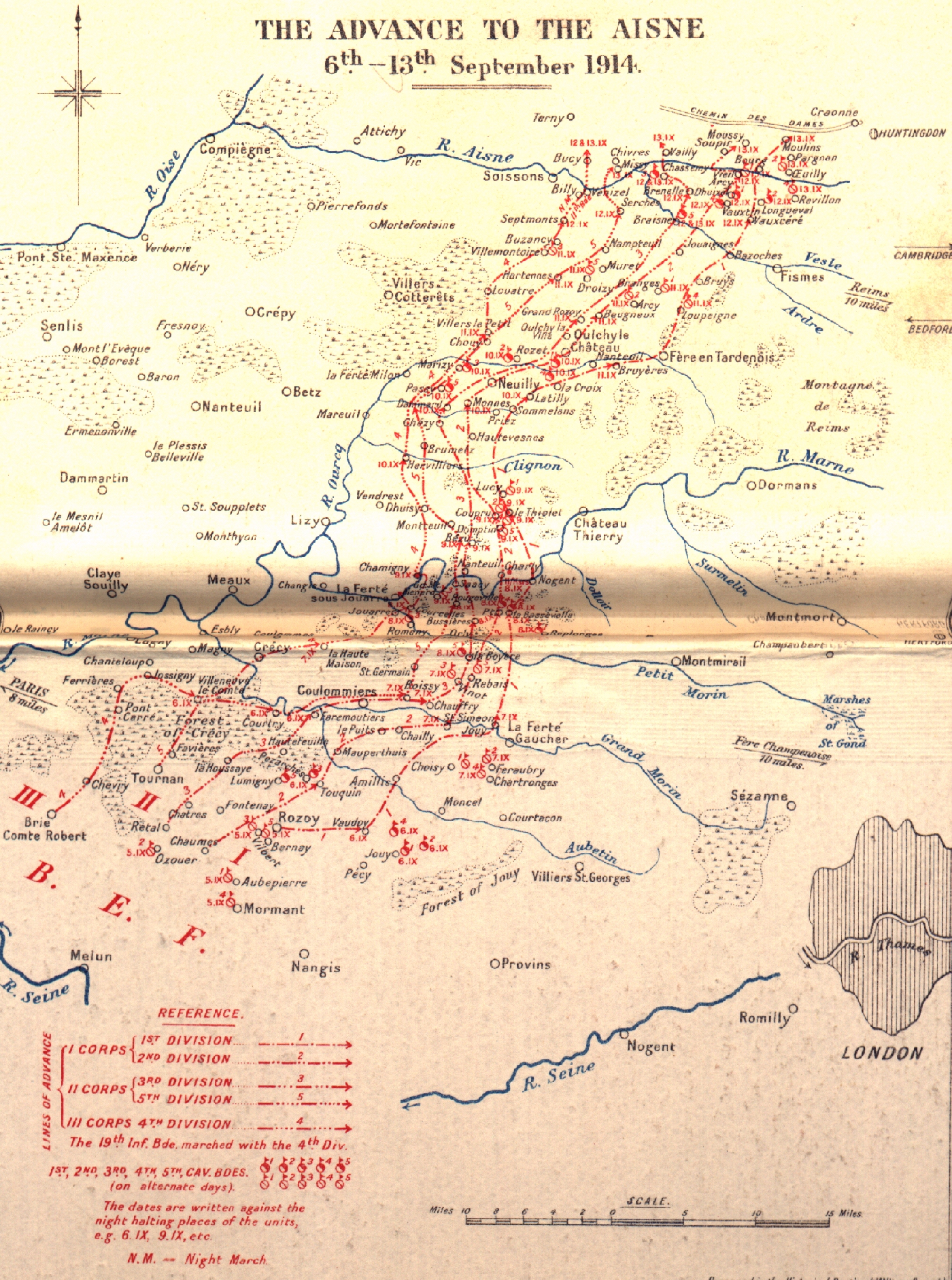MAP - THE ADVANCE TO THE AISNE, 6TH./13TH SEPTEMBER 1914